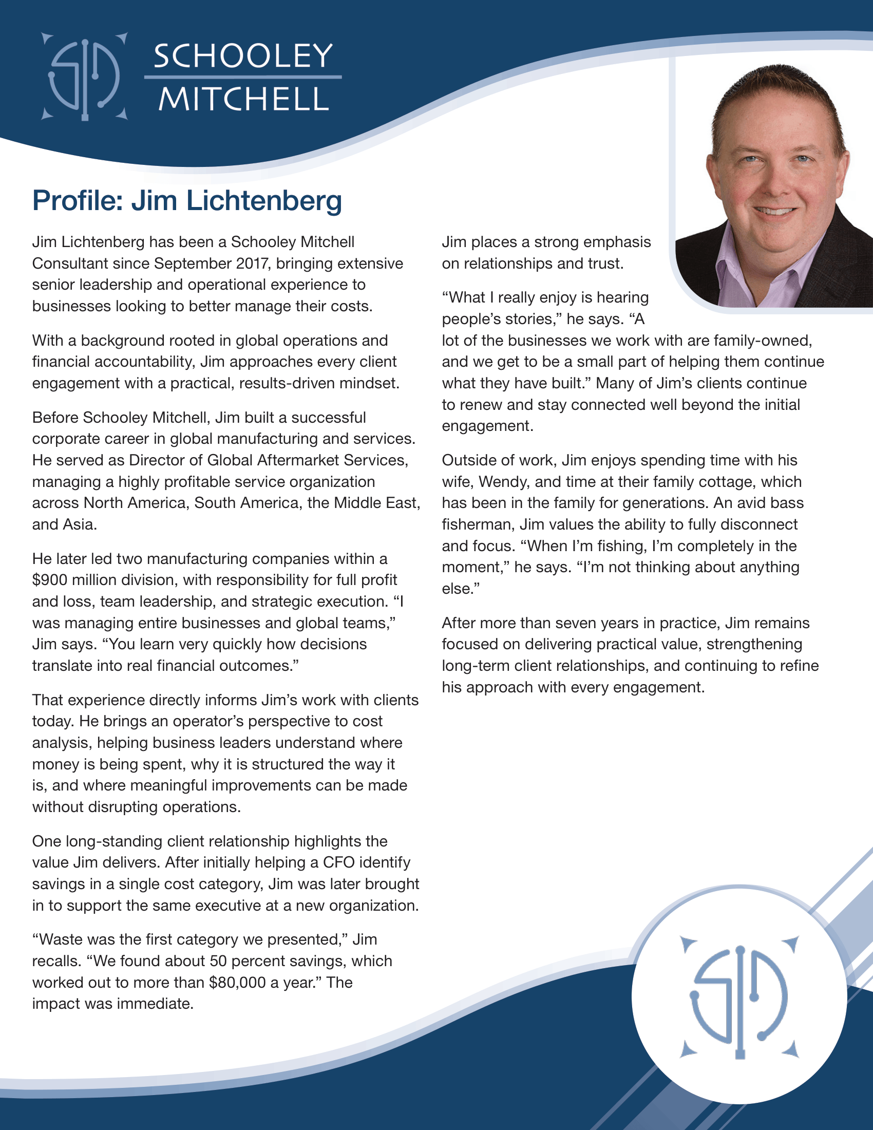 "We were pleased with the review process, their professionalism and the results. We would highly recommend Jim Lichtenberg of Schooley Mitchell to any organization or business that is interested in finding solutions that best fit their business for the lowest price possible."